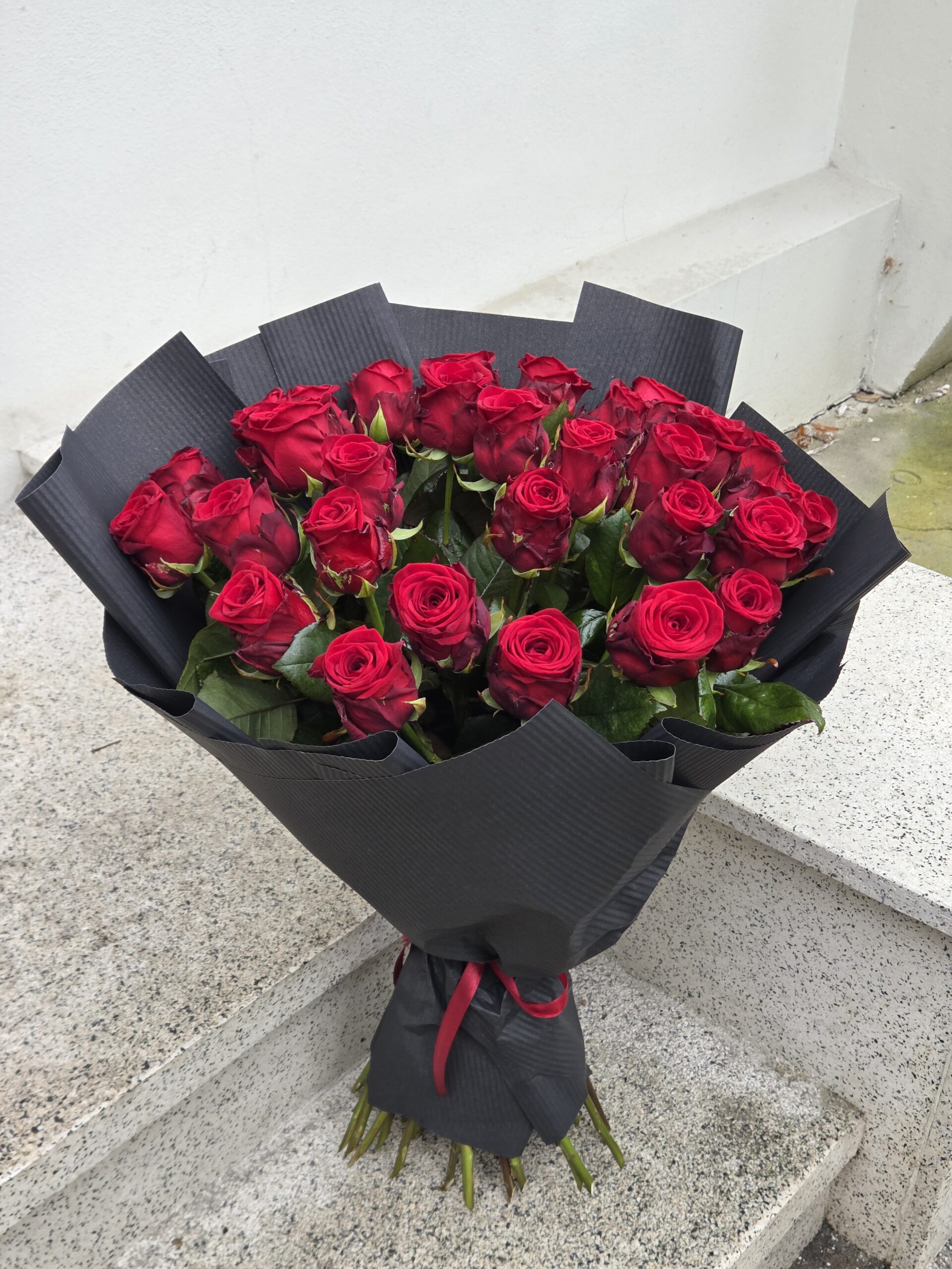 Bukiet świeżych, czerwonych róż. To ponadczasowy symbol głębokiej miłości, pasji i szacunku. Niezależnie od tego, czy świętujecie rocznicę, Walentynki, czy po prostu chcesz sprawić, by dzisiejszy dzień był wyjątkowy – ten bukiet to idealny wybór.